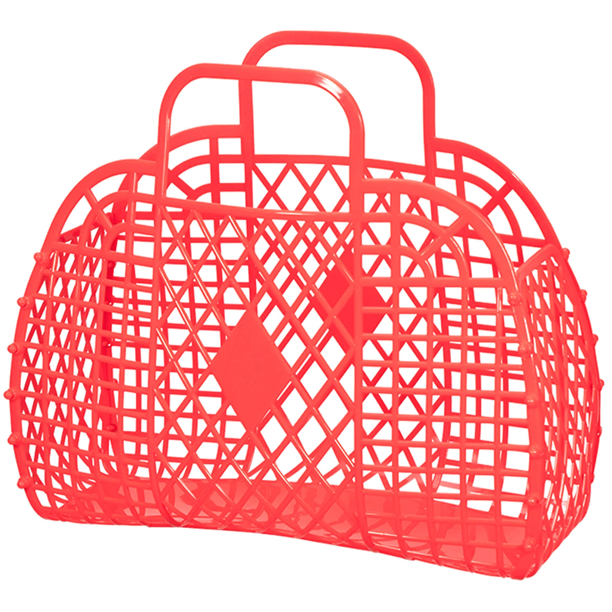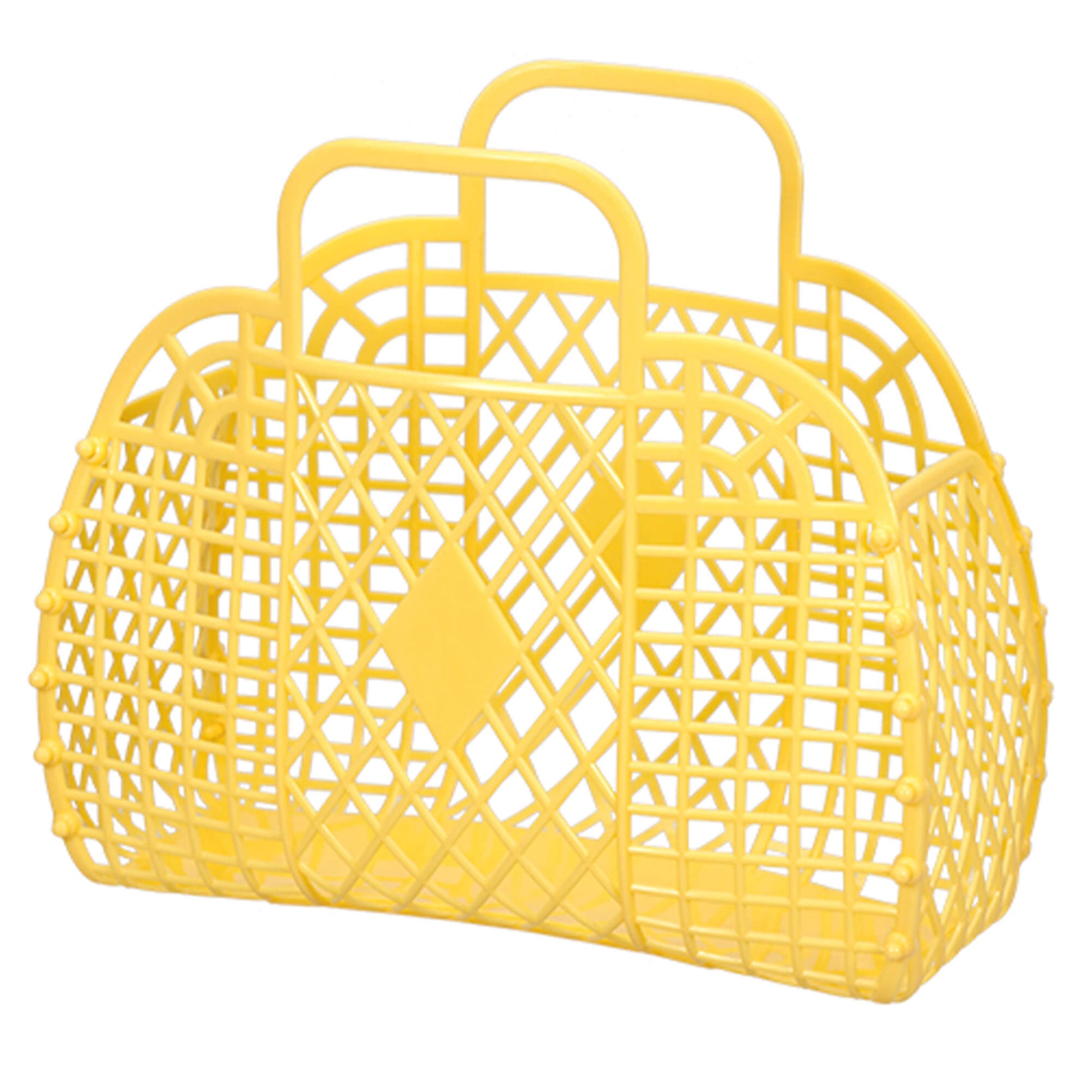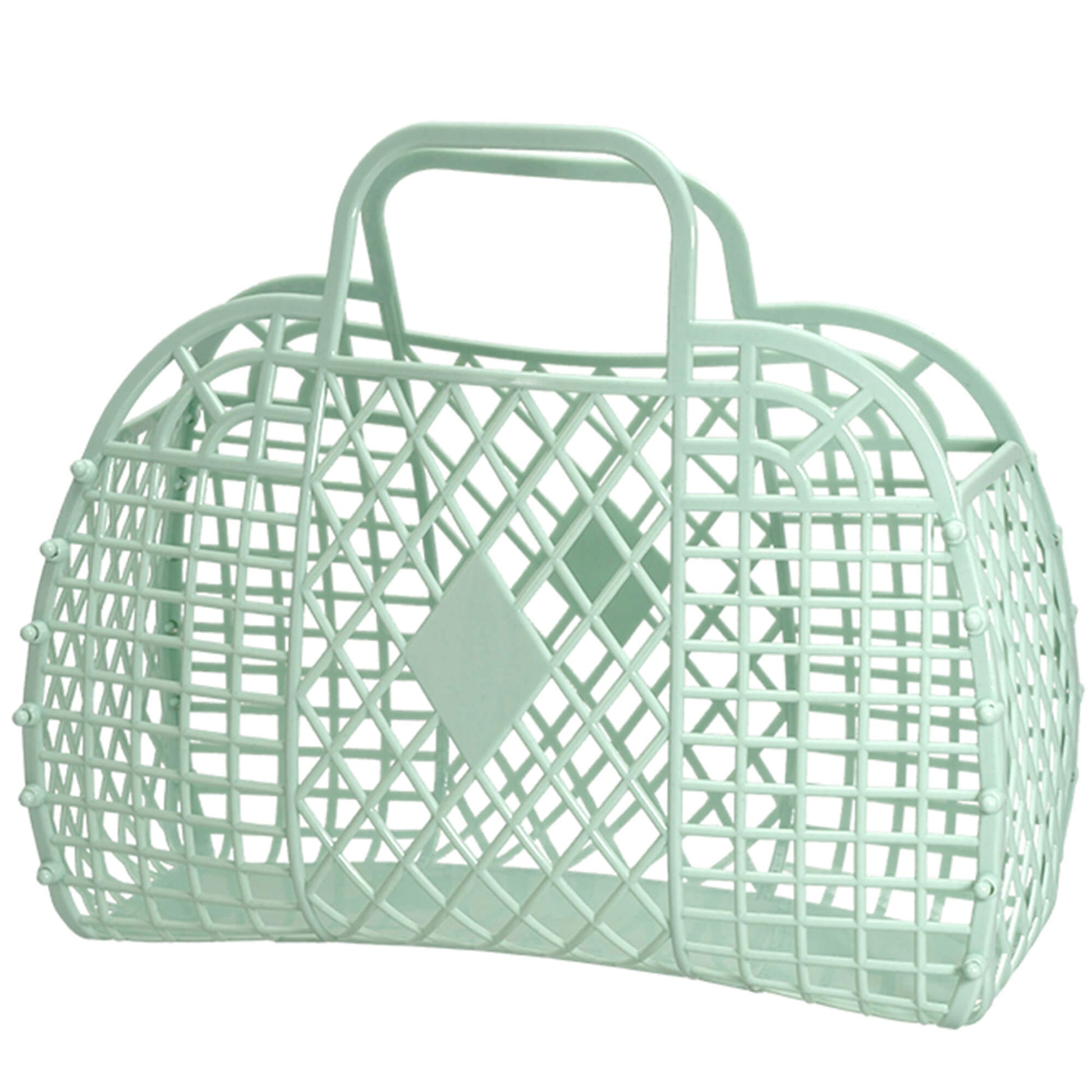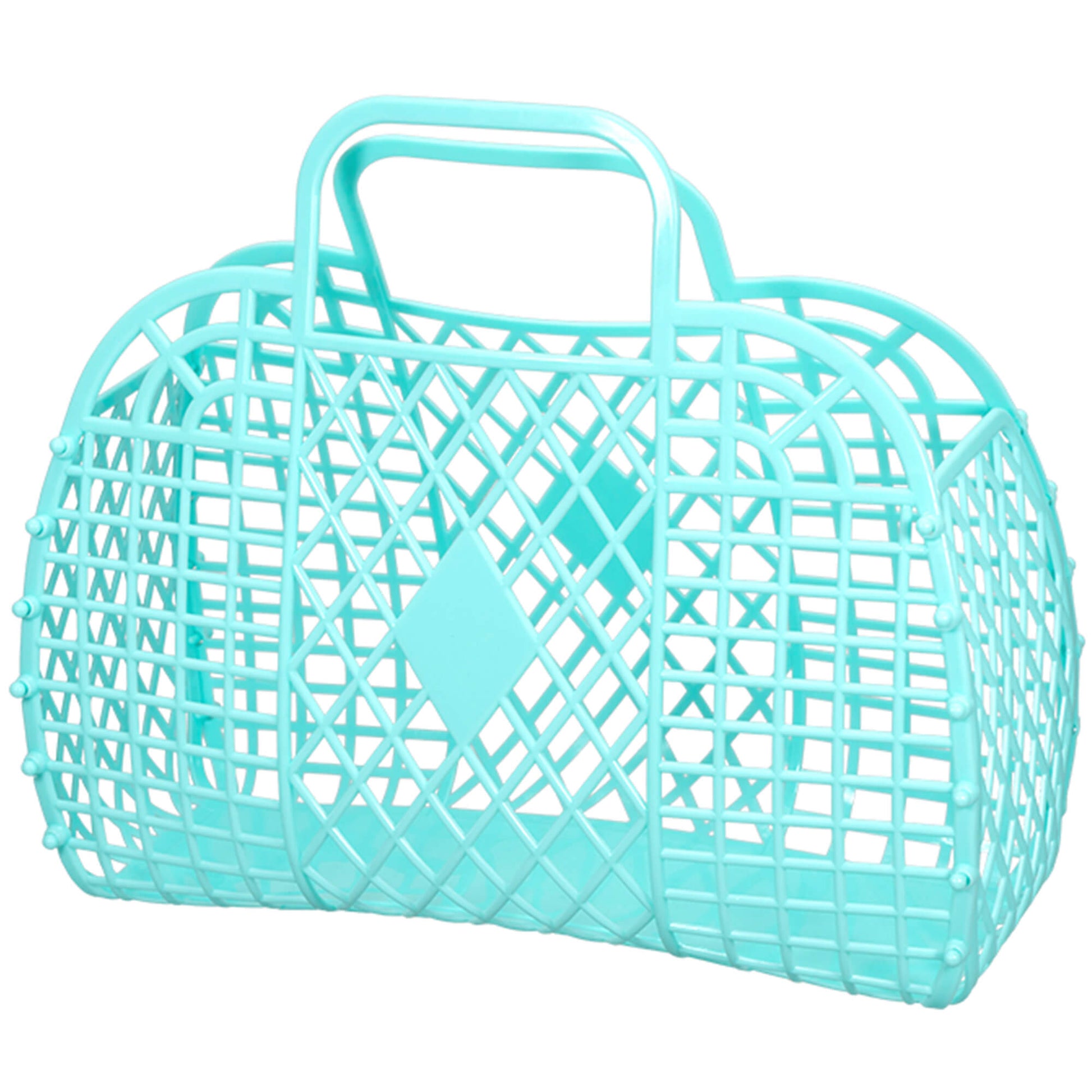 Ideal for summer the Retro Basket will hold all your daytime essentials – Stylish and practical! It’s also a great size for carrying groceries, a knitting project or your kid’s beach toys. At the same time, this jelly tote bag is very suitable for bridesmaids to use as a large purse, beach bag, jelly purses and so much more. With ergonomic handles for comfy carrying, it is shipped flat for easy assembly at home and can be gently undone by pushing the buttons back through. The perfect accessory for your holiday suitcase!